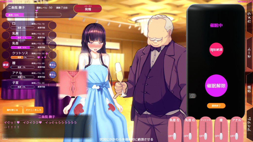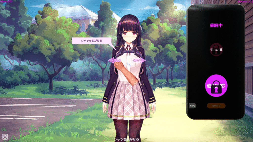 最初の「催眠」モードでは、ヒロインが半分眠ったような状態になり、主人公の命令に従うようになります。